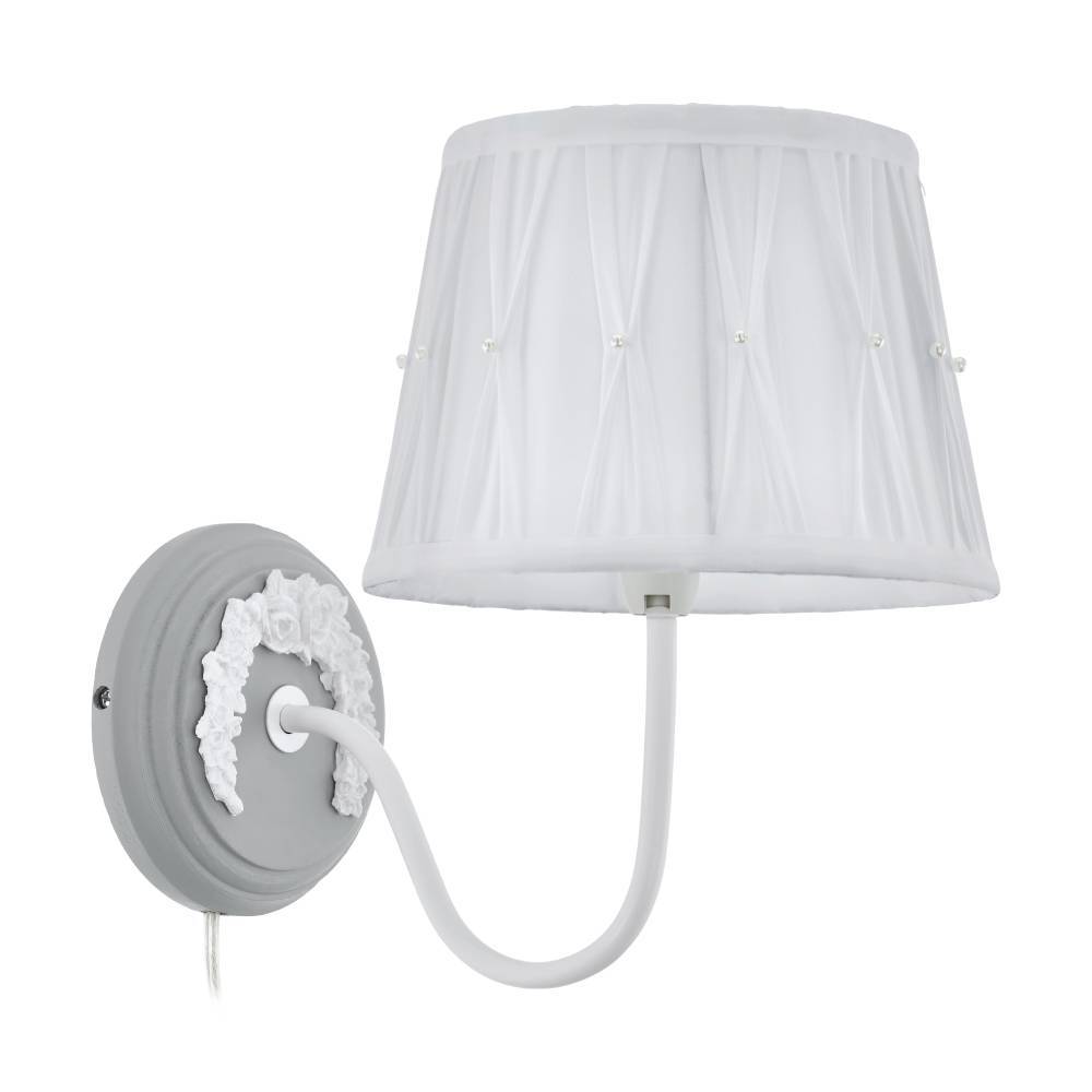 Aplică BRIDEKIRK 43237, E14, 1X40W, IP20, lemn, oțel, patină gri, textil cu decorațiuni, alb
