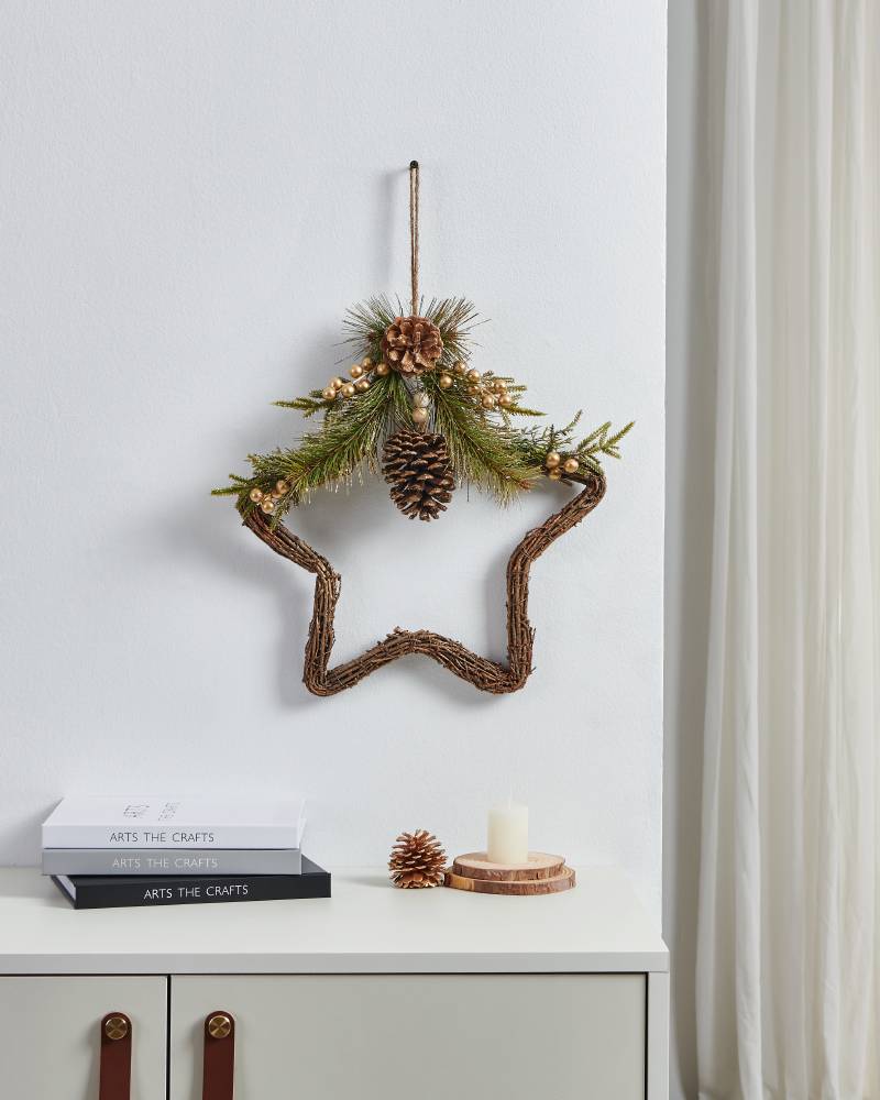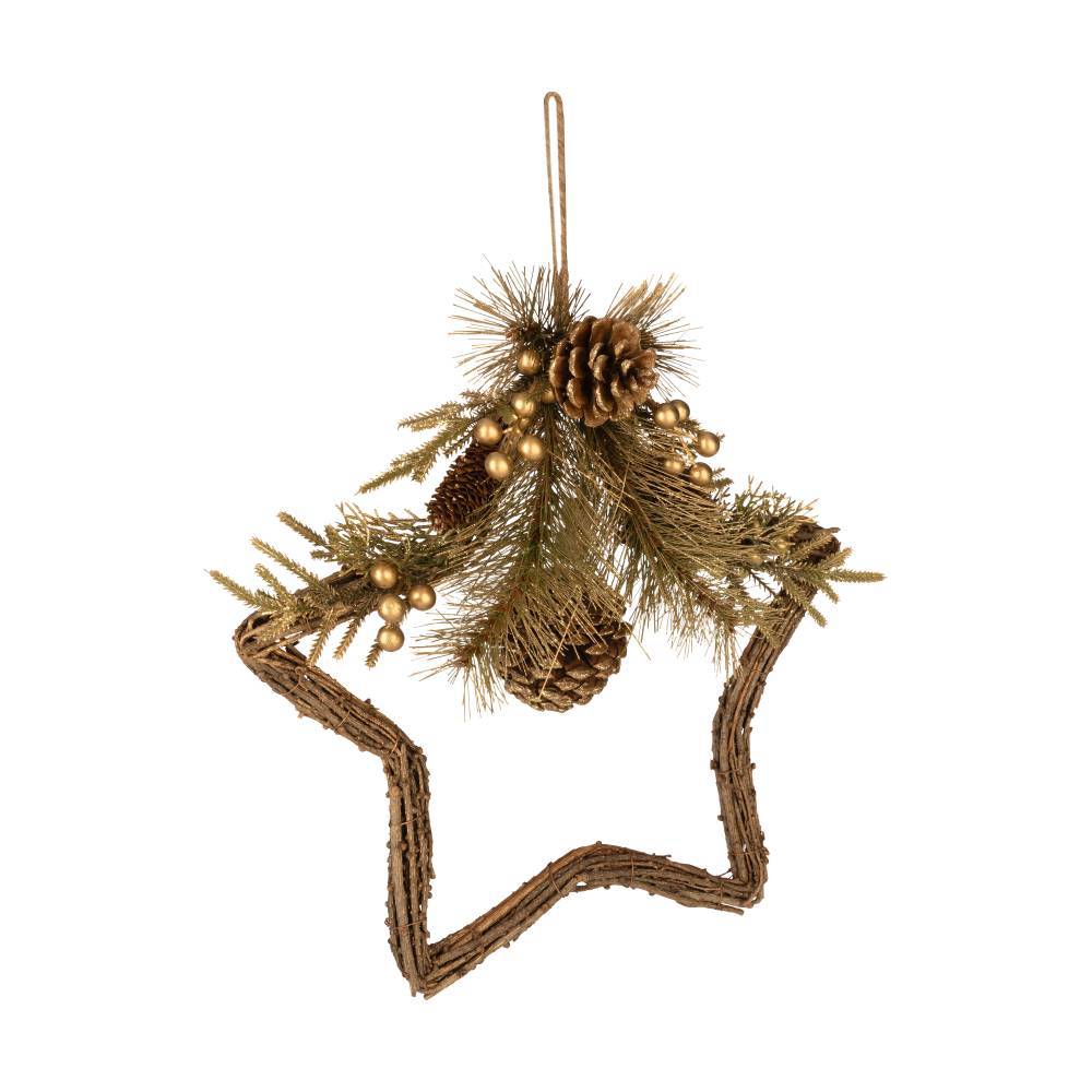 Decorațiune coroniță GERIK 350x350x75mm 428272, conuri de pin, plastic, metal, colorat, natural