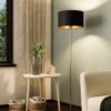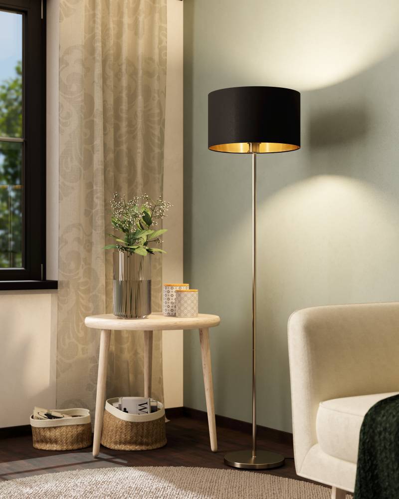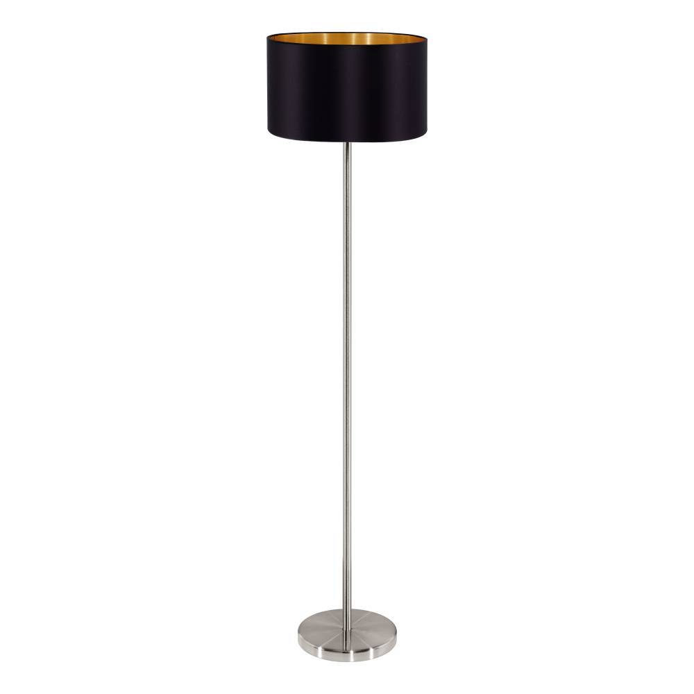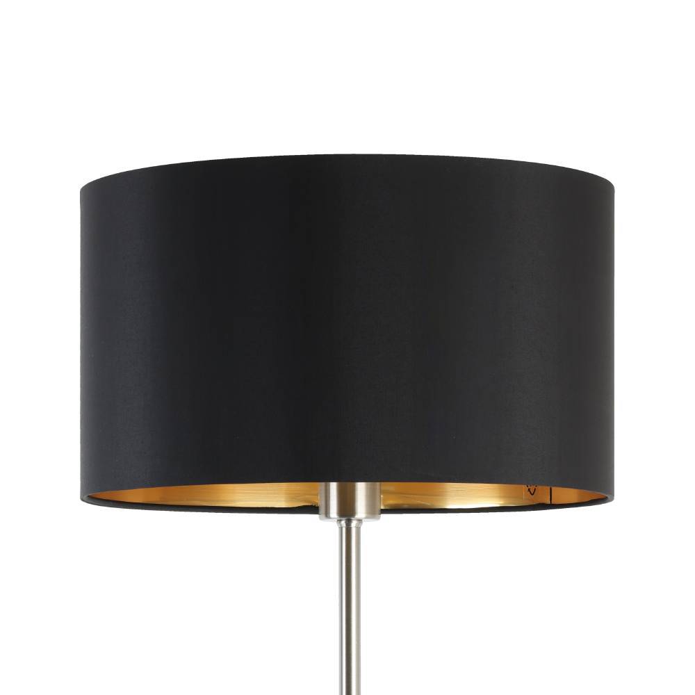 Lampadar MASERLO 95169, H1510 mm, Ø380 mm, E27, 1X60W, IP20, oțel nichel mat, textil negru, auriu