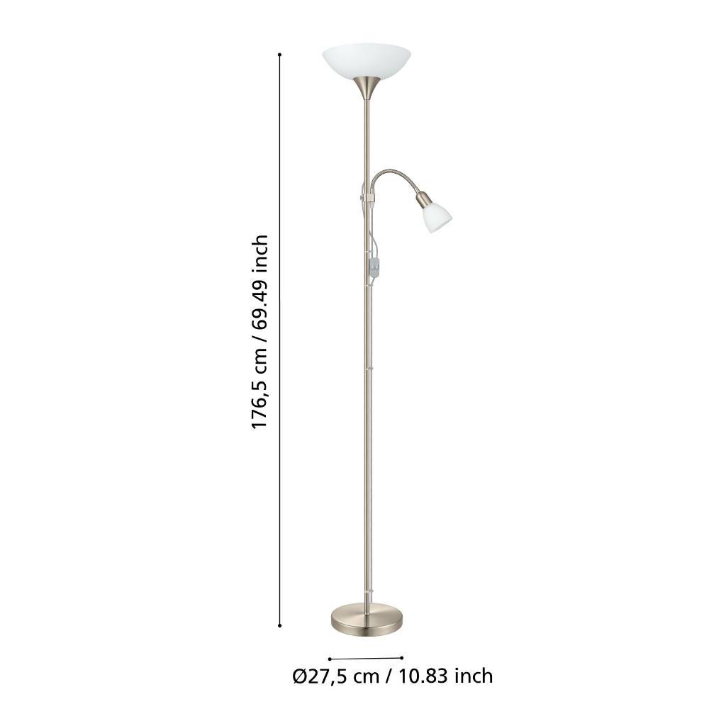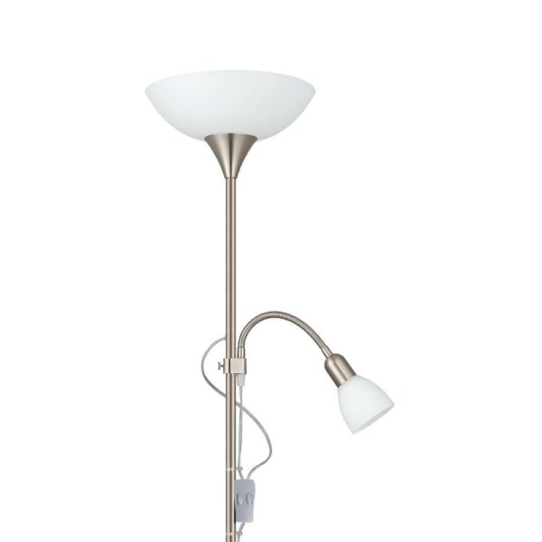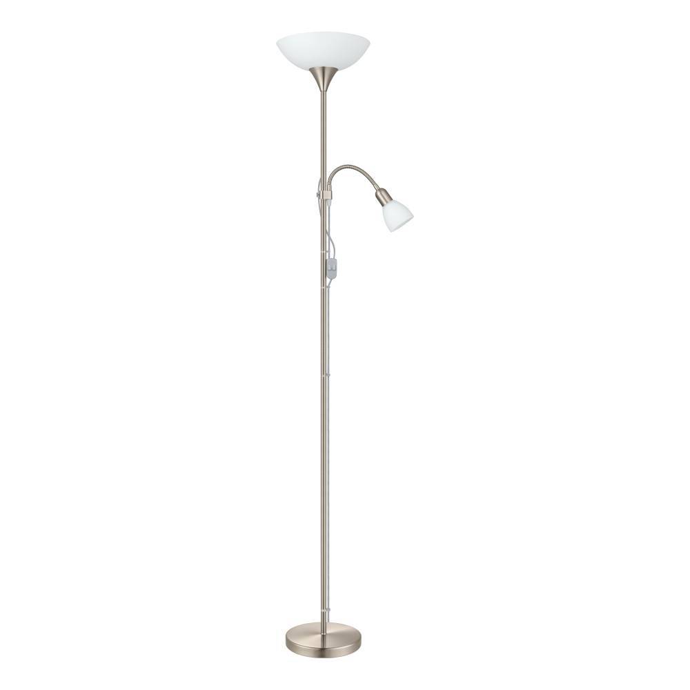 Lampadar UP 2 82842, H1765 mm, Ø275 mm, E27;E14, 1X60W;1X18W, IP20, oțel nichel mat, plastic, sticlă alb