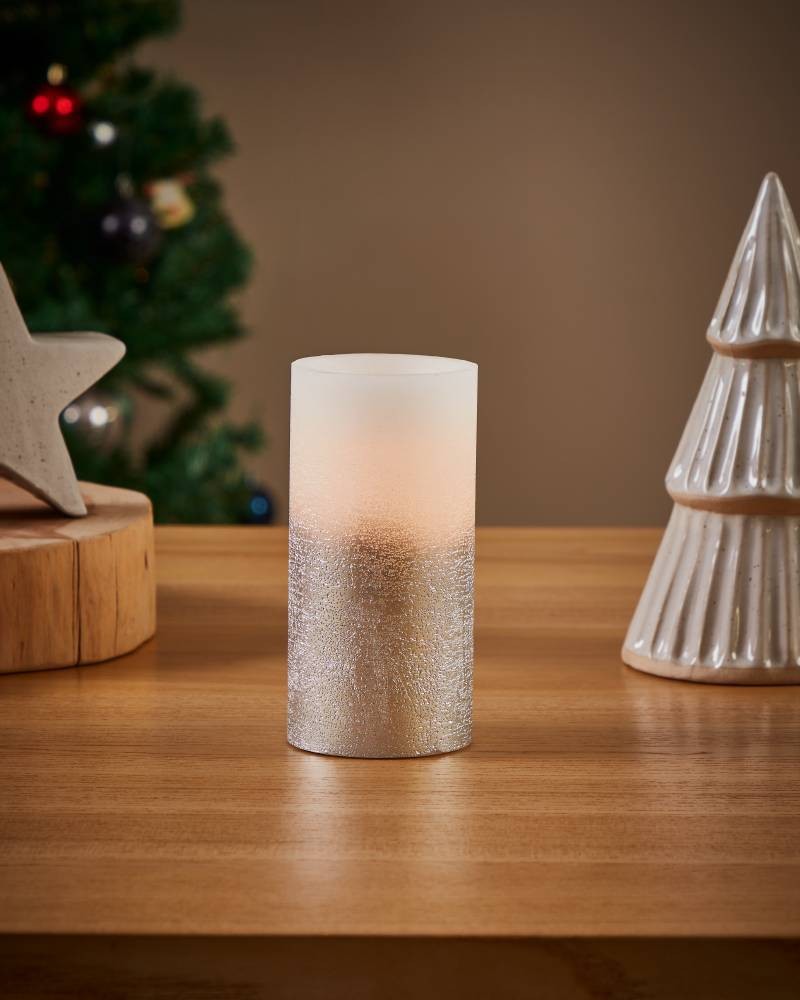Lumânare LED AMBORIALA 422454, ceară, plastic, alb, argintiu metalic