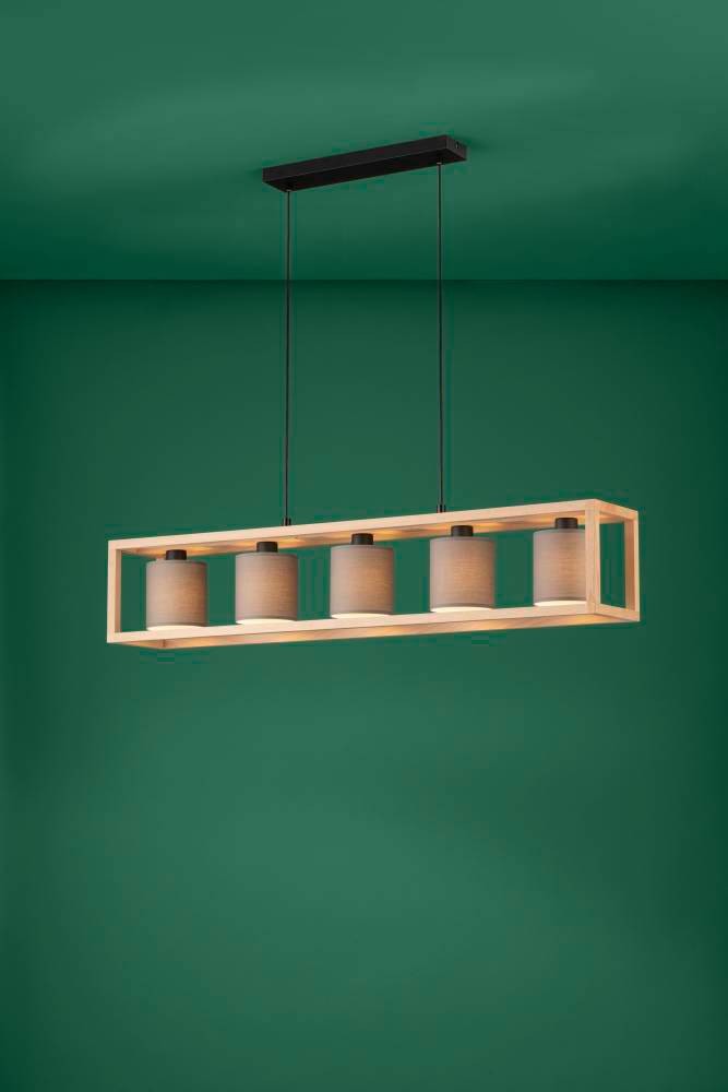 Lustră GRANADOS 390109, E27, 5X25W, IP20, oțel, lemn, negru, maro, textil
