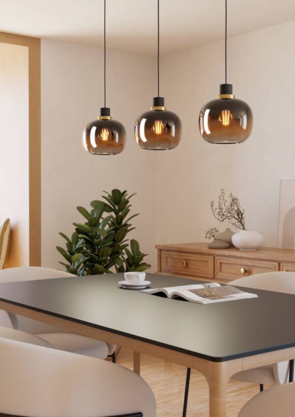 Lustră OILELLA 99615, E27, 3X40W, IP20, oțel, negru, alamă, sticlă aburită