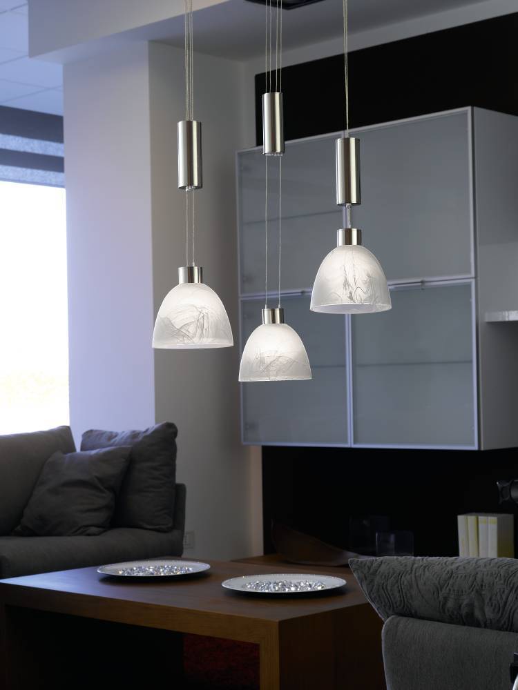 Lustră ORISTANO 91607, Ø395 mm, GY6,35, 3X50W, IP20, oțel nichel mat, sticlă alabastru albă