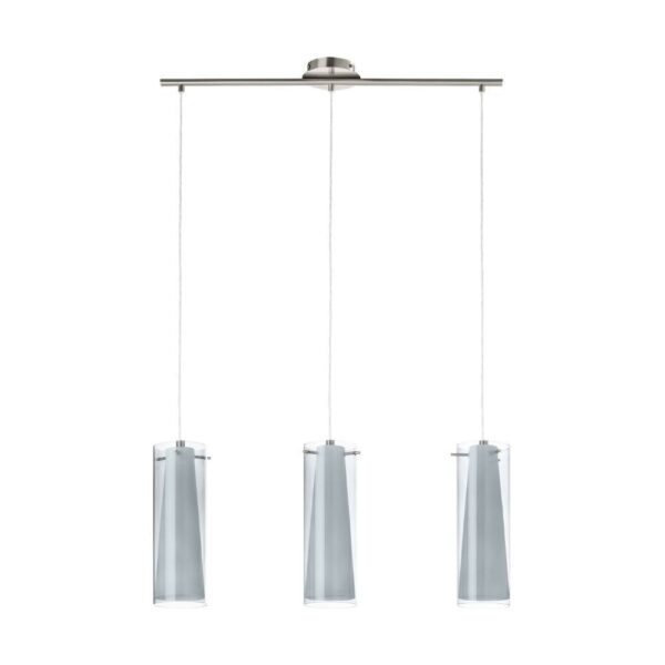 Lustră PINTO NERO 90305, E27, 3X40W, IP20, oțel nichel mat, sticlă fumurie, sticlă opal mat, negru transparent, alb