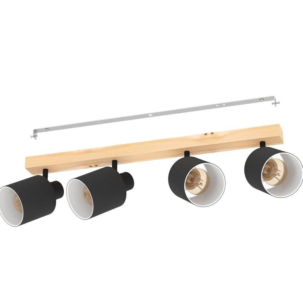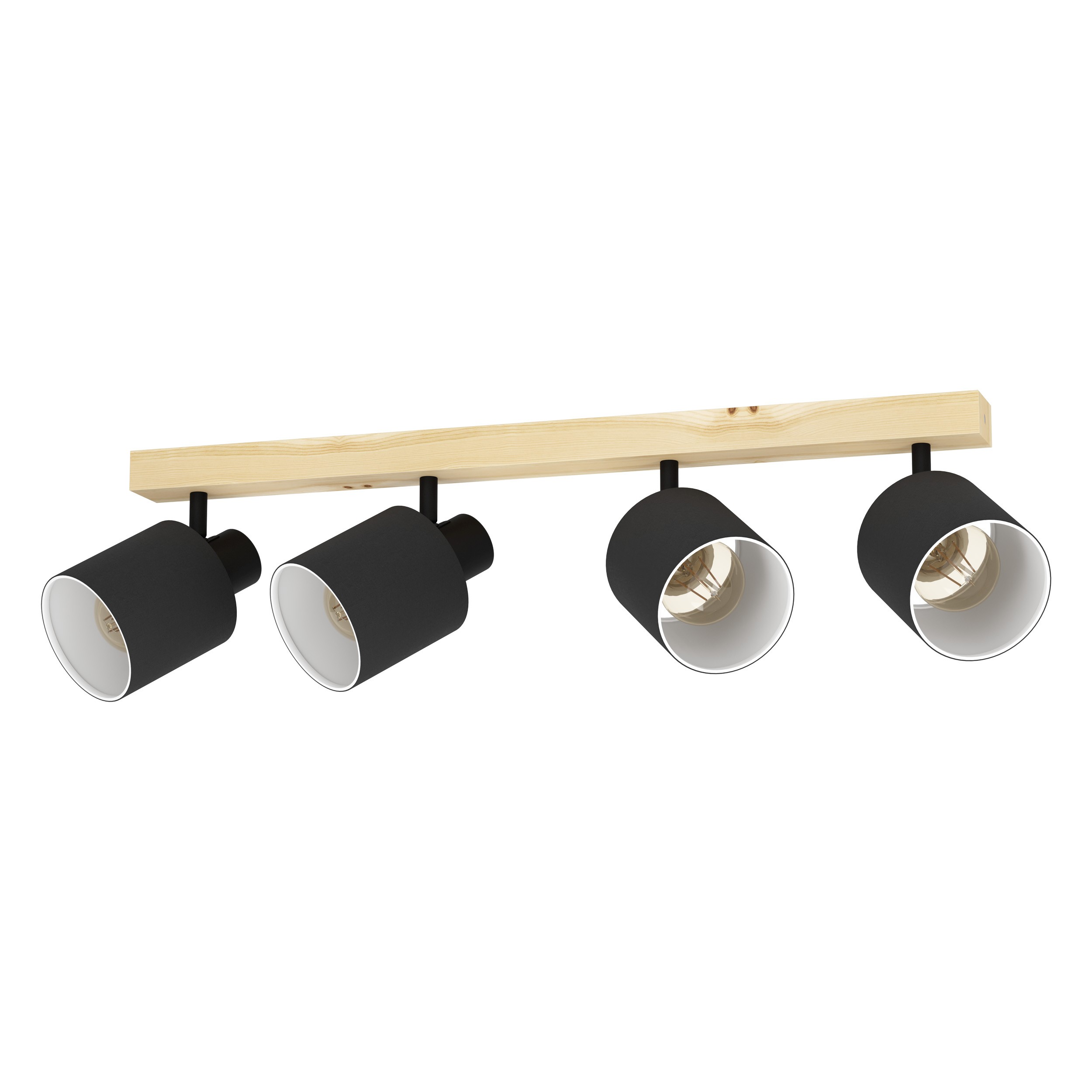 Plafonieră BATALLAS 99492, E27, 4X10W, IP20, lemn, oțel, maro, negru, textil, negru, alb