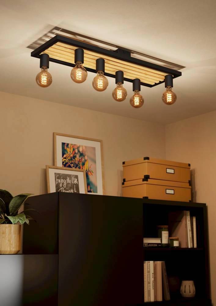 Plafonieră CONSETT 43724, E27, 6X40W, IP20, oțel, lemn, negru, maro