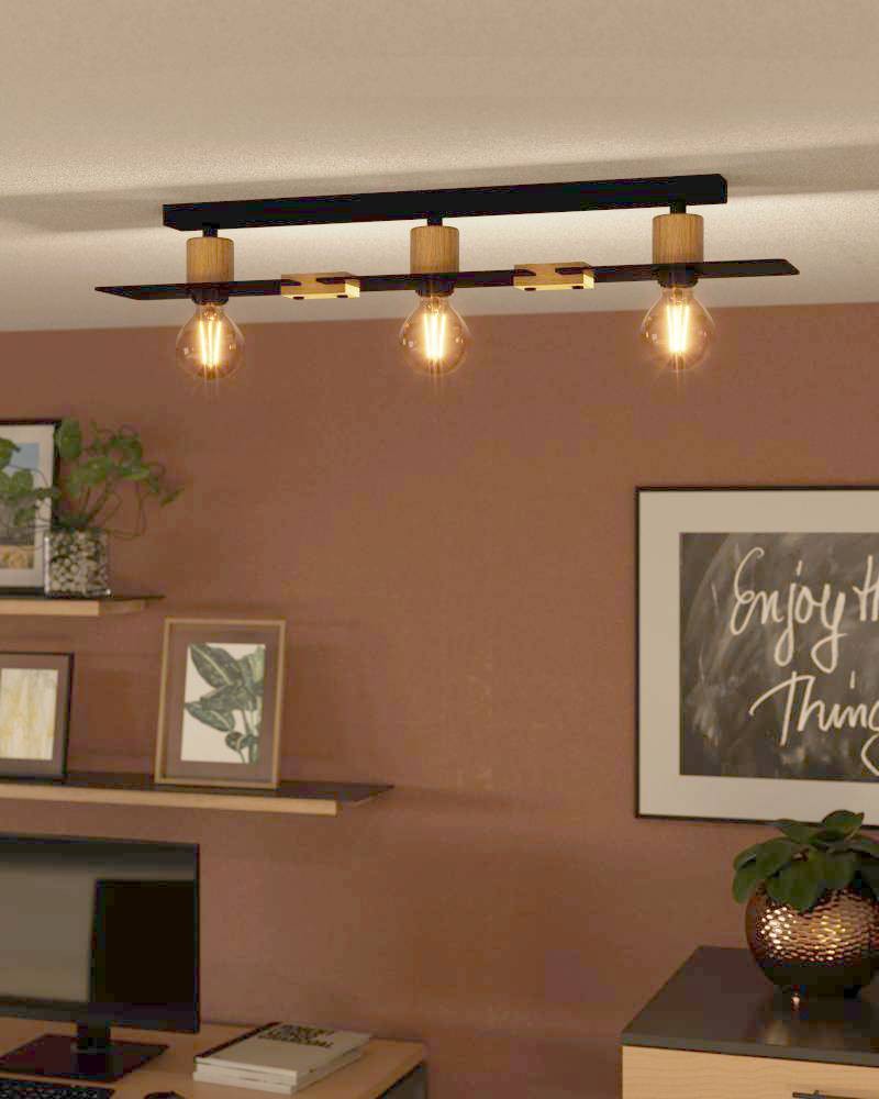Plafonieră BRAMERTON 43751, E27, 3X40W, IP20, oțel, lemn, negru, maro