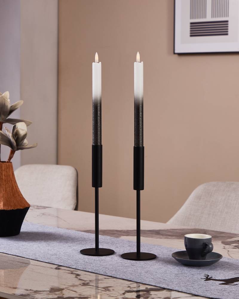 Set 2 lumânări LED AMBORIALA 422475, ceară, plastic, alb, negru metalic