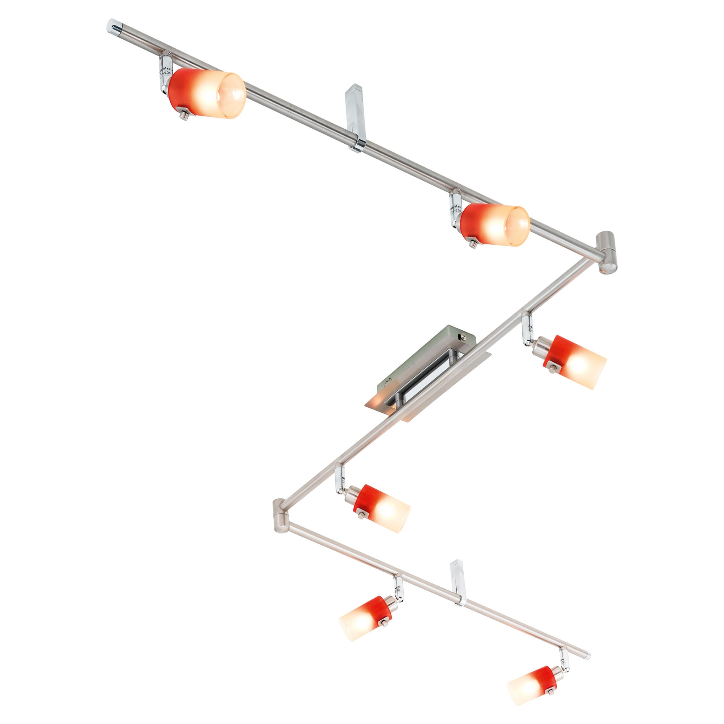 Spot pe bară KENO 50063, G9, 6X40W, IP20, oțel, nichel mat, crom, sticlă satinată, roșu, portocaliu