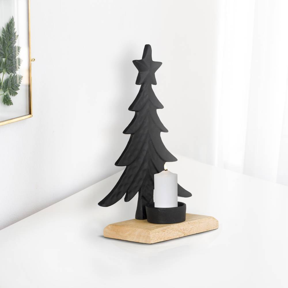 Suport lumânare BALIGUIAN 422369, aluminiu, lemn de mango, negru, natural