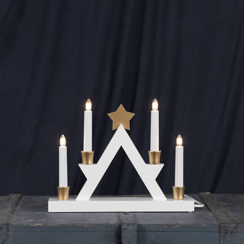 Suport lumânare LED JULLE 271-32, E10, 4X3W, IP20, lemn, alb, auriu, plastic, alb