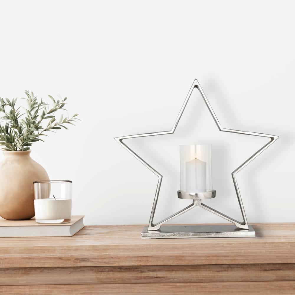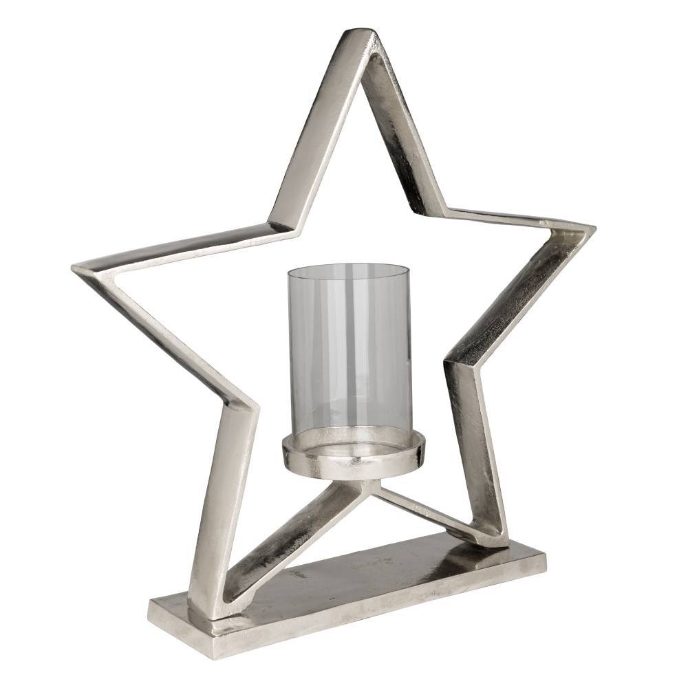 Suport lumânare MUKAYLE 470x115x460mm 422415, aluminiu, sticla, crom, transparent