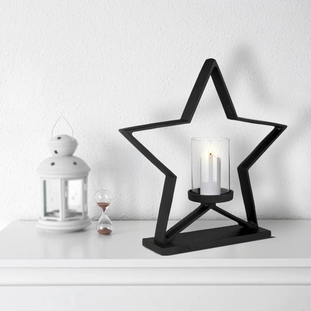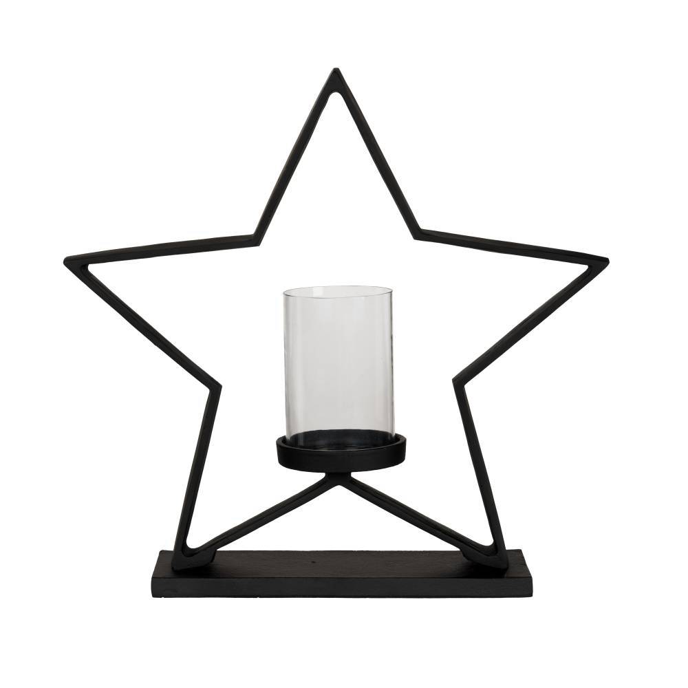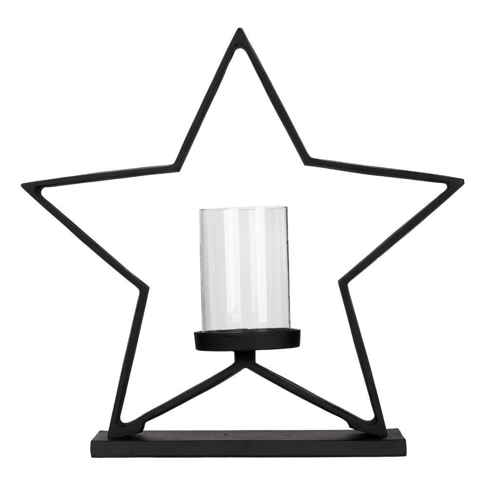 Suport lumânare MUKAYLE 470x115x460mm 422416, aluminiu, sticla, negru, transparent